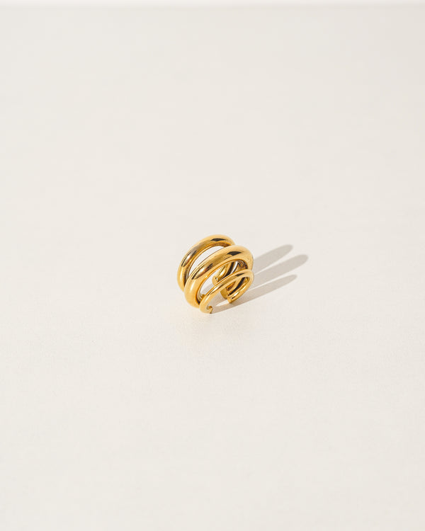 Thick three-layered gold ear cuff.