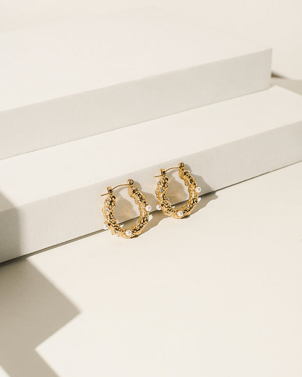 Carved gold hoops with pearl and zircon inlays, very similar to the texture of sea corals!
