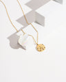 - Dainty necklaces with faux shell & a gold medallion pendant.