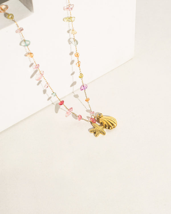 Multicolored crystal chipped chain with summer-inspired pendants.